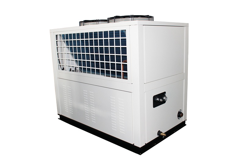 風(fēng)冷熱泵冷水機(jī)組制冷原理:壓縮機(jī)排出的高溫高壓的制冷劑氣體進(jìn)入冷凝器中,通過與冷卻介質(zhì)的熱交換,成為高壓制冷劑液體經(jīng)過過濾器通過膨脹閥的節(jié)流成為低溫低壓的制冷劑液體進(jìn)入蒸發(fā)器,通過與冷凍水的熱交換,吸收冷凍水的熱量成為低溫低壓的制冷劑氣體吸入壓縮機(jī),冷凍水由于放熱溫度降低向外界提供冷量。